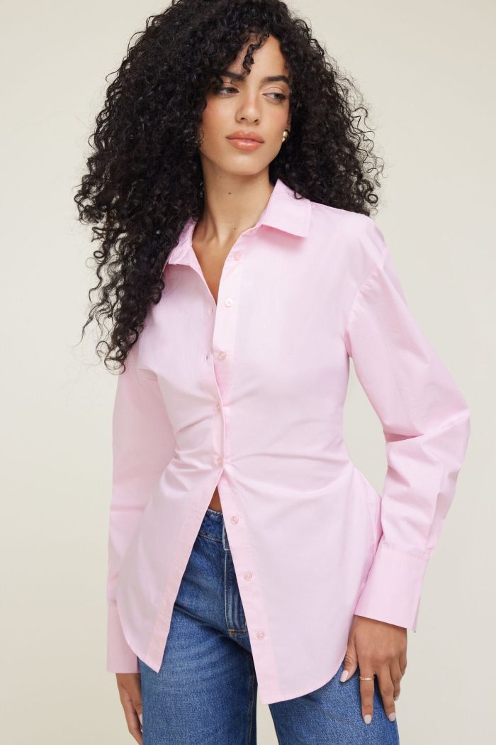 Home Blouses & Tops Cinched Waist Poplin Shirt