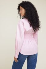 This shirt is made from crisp poplin with a light handfeel. It’s relaxed around the bust and cinches at waist for a fitted, curvy silhouette. Wear it with jeans for an effortless on-the-go look or with pants for a going out look.