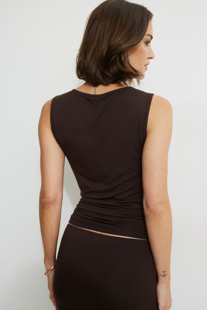 This tank top is made from soft and lightweight jersey, designed for a fitted silhouette. Make it a going out top by styling it with a skirt or pants.