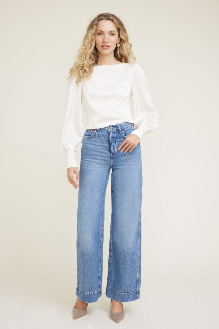 This blouse is made from flowy, silky satin that’s super soft to the touch with just a bit of stretch to move with you. It’s relaxed with balloon sleeves for an elevated eye-catching look. Style it with pants for a feminine work wear look or with a skirt for nights out.