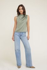 This satin tank top is made from soft and silky satin, designed for a fitted silhouette. Style it with a