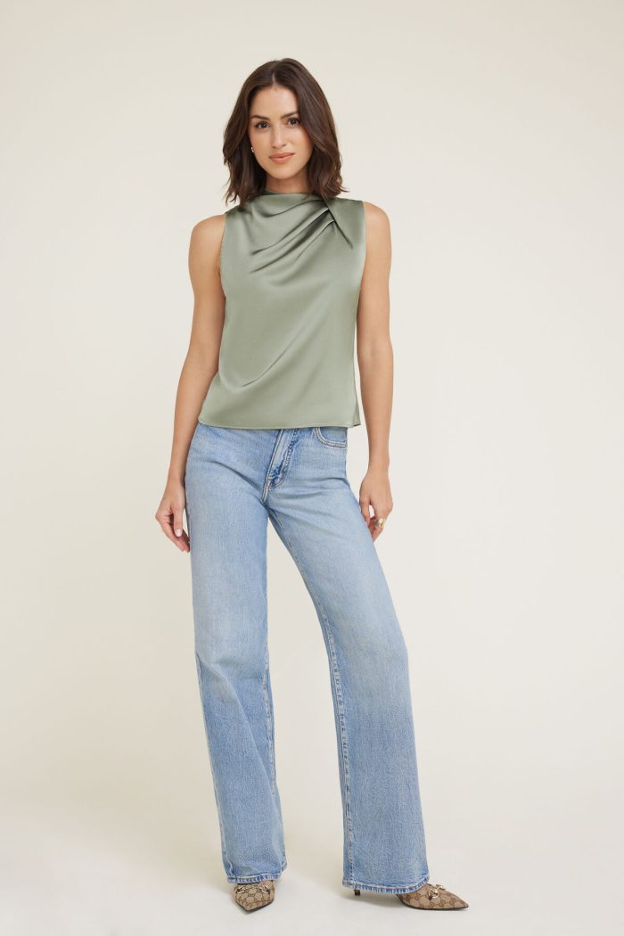 This blouse is made from flowy, silky satin that’s super soft to the touch with just a bit of stretch to move with you. It’s fitted throughout with a subtle drape at the front for elevated wear. Style it with pants for a feminine work wear look or with a skirt for nights out.