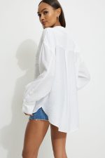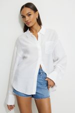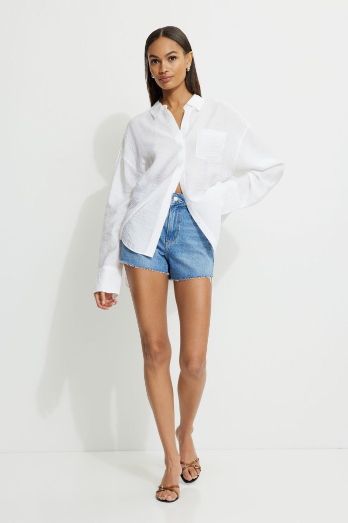 This shirt is made from a textured airy and lightweight woven fabric, designed for an oversized fit. Wear it over your swimwear on beach day getaways.
