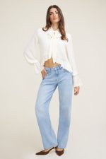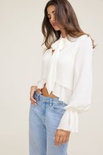 This blouse is made from airy, lightweight crepe that’s drapey with a dry handfeel. It’s designed for a relaxed fit throughout and ruffled detailing for a romantic boho look. Style it with jeans for everyday wear or with a skirt for a going out look.